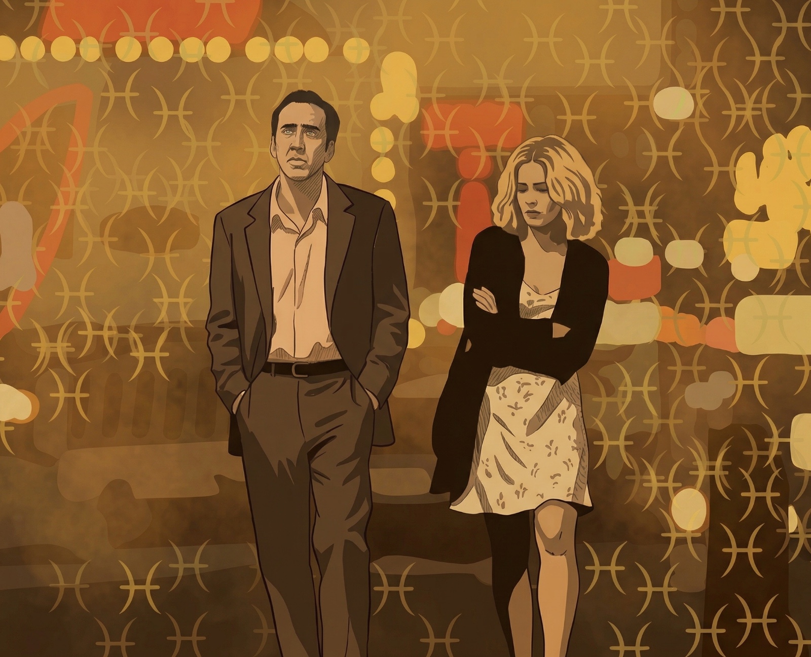 Personajların ilk qarşılaşdığı otel səhnəsi, zahirən klişe bir ssenari təəssüratı yaratsa da, Figgis bu səhnəni filmin emosional və tematik mərkəzinə çevirir. Benin “Sadəcə getmə…” replikası, münasibətlərinin iqtisadi mübadilə (fahişə-müştəri) müstəvisindən çıxıb, ekzistensial bir müstəviyə keçdiyini göstərən dönüş nöqtəsidir. Ben, pulu bir vasitə kimi deyil, bir yalvarış forması kimi istifadə edir. O, cinsi xidmət deyil, insan varlığı üçün yalvarır. Bu, bir insanın tənhalıqdan nə qədər dərin əzab çəkdiyini vurğulayan təsirli bir məqamdır. Qaydaların şəhəri olan Las Veqasda bütün qaydaları pozan bu adam, Seranın illərdir peşəkar maskası altında gizlətdiyi öz dərin boşluğunun güzgüsünə çevrilir.